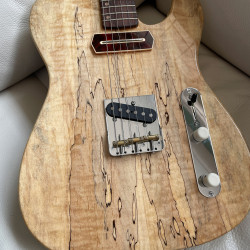 T Style body of Alder and Spalted Maple features a traditional T stye pickup in the bridge and CC style in the neck. Cocobolo fingerboard on maple.
