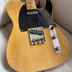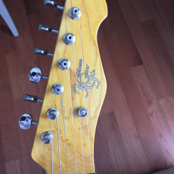 T style made from old one-piece clear pine and Birdseye maple neck. My own personal guitar for many years. Naturally “reliced”.