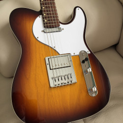 Alder T Style featuring two tone sunburst, Cocobolo fingerboard on maple, our signature brass and ivoriod position markers, JH humbucking in the bridge position and Classic T-Style in the neck.